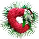 Corazón de claveles color rojo con acento de gerberas y diferentes verdes. Dimensión aproximada 80 cm. Incluye cinta con dedicatoria personalizada para un máximo de 60 caracteres de texto.