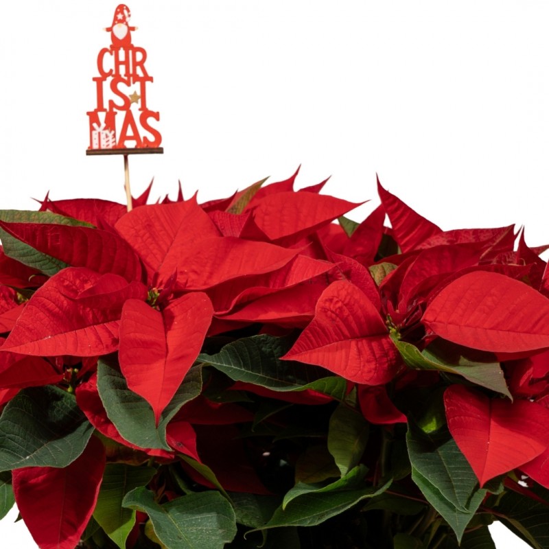 Una preciosa composición de flores de Pascua de tamaño mediano, acompañada por un delicado pick navideño que realza su encanto festivo.