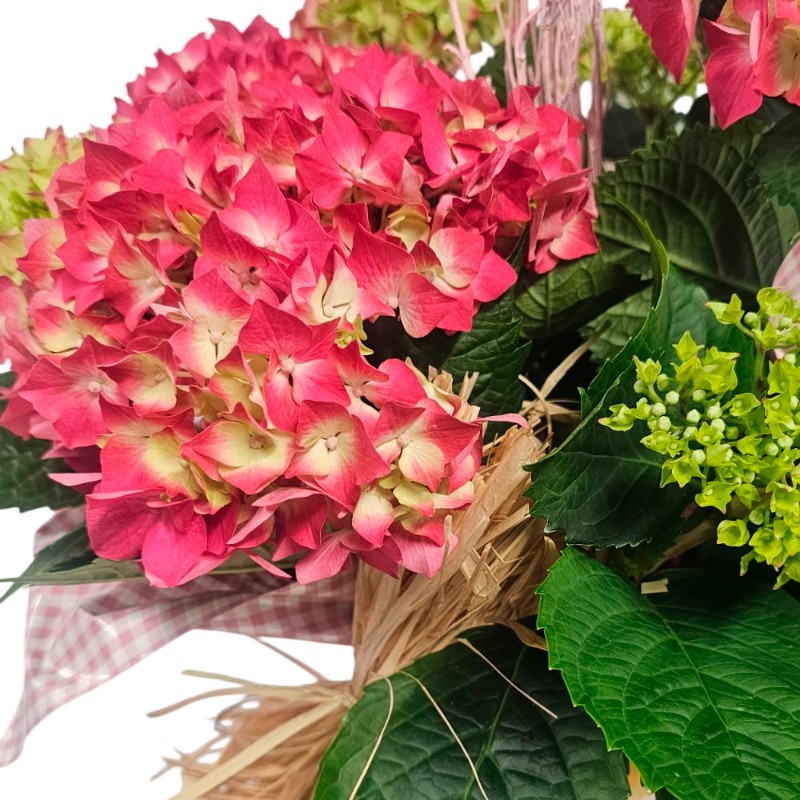Bolso de tela con estampado floral que presenta una delicada hortensia acompañada de ramas decorativas. Un regalo versátil que combina belleza y funcionalidad, ideal tanto como detalle decorativo como accesorio reutilizable.