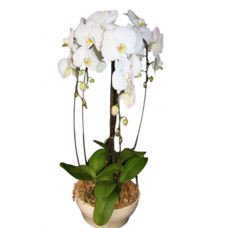 Precioso centro de orquídeas phalaenopsis, este producto es de gran duración, y un elegante regalo para cualquier acontecimiento.*Se presenta en un solo tamaño.
